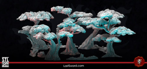 Trees and Forest Borders of Nomen Betu. Suitable for any Elven and Wood Elves army, warband and collection.